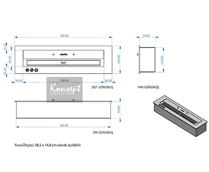 Montaj Ölçüsü: 58,5 x 14,8 cm