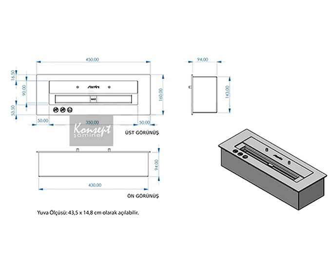 Montaj Ölçüsü: 43,5 x 14,8 cm