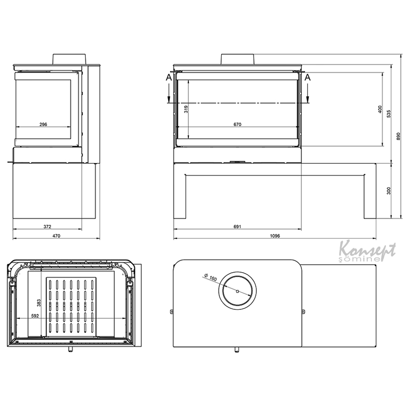 · Baca çıkış çapı: 160 mm